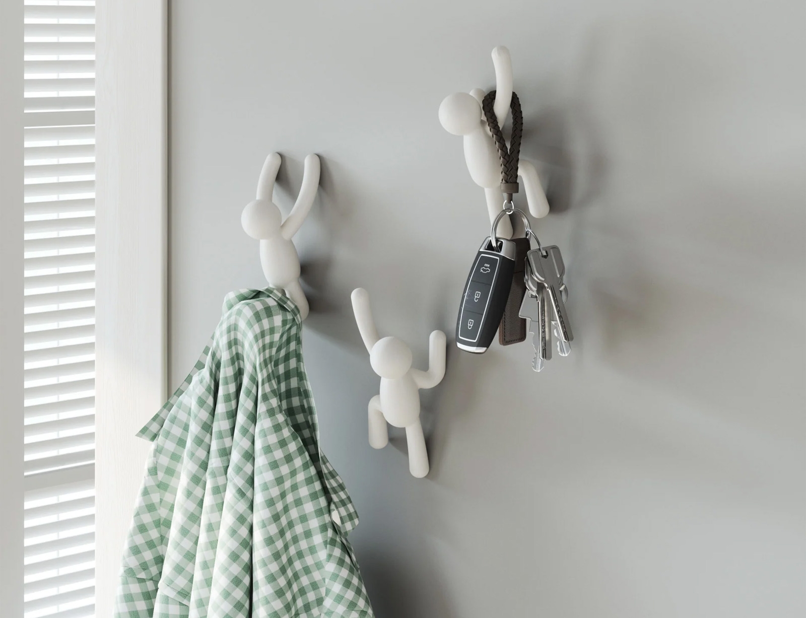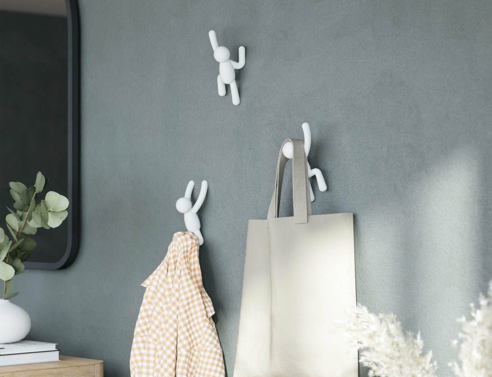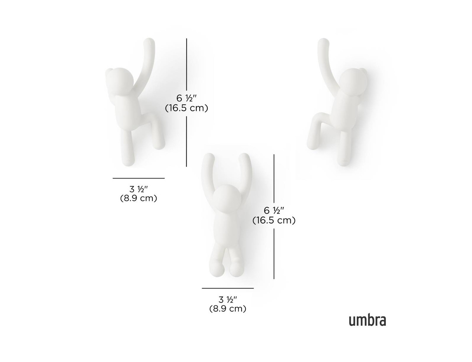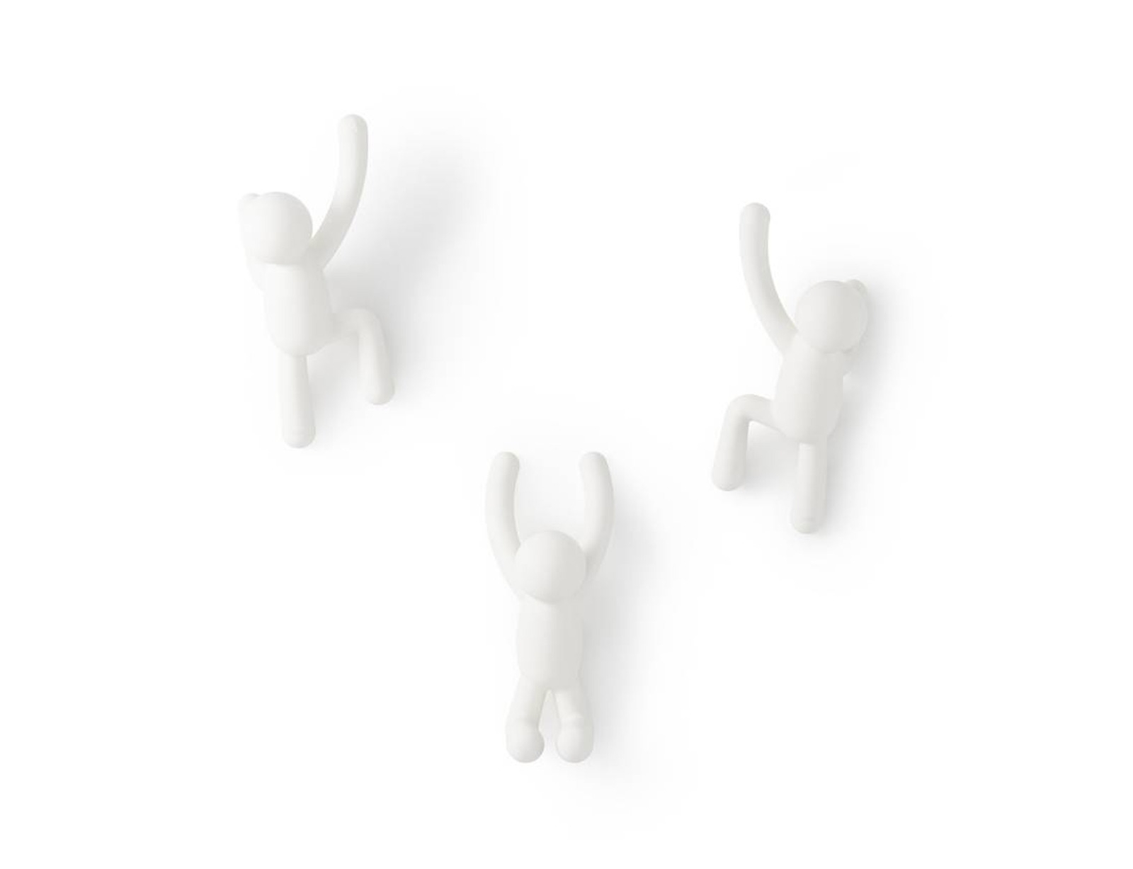 Αυτό το σετ κρεμάστρες τοίχου, 3 τεμαχίων, απεικονίζει τον δημοφιλή χαρακτήρα Buddy της Umbra που «σκαρφαλώνει στους τοίχους» σε διάφορες θέσεις. Όταν δεν χρησιμοποιούνται, χρησιμεύουν ως διασκεδαστική, διακόσμηση τοίχου που σίγουρα θα ξεκινήσει συζητήσεις. Οι κρεμάστρες τοίχου Buddy είναι η τέλεια προσθήκη στην είσοδό σας και μια παιχνιδιάρικη, εναλλακτική λύση σε μια παραδοσιακή κρεμάστρα ρούχων.
