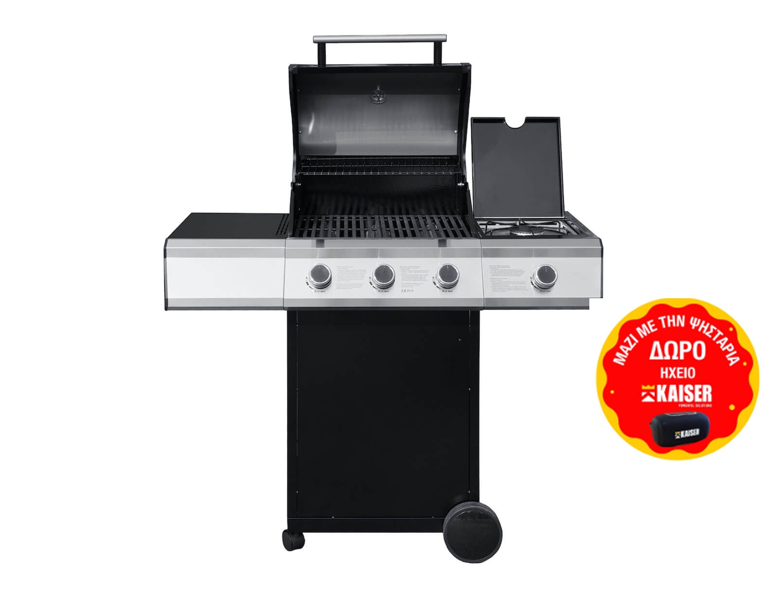 Η ψησταριά υγραερίου Inova της Kaizer συνδυάζει στιβαρή κατασκευή από ατσάλι με αξιόπιστη απόδοση για καθημερινό ψήσιμο. Διαθέτει 3 ανεξάρτητα ρυθμιζόμενους καυστήρες, 1 πλαϊνή εστία με πλήρη αυτονομία στην παρασκευή γευμάτων, σχάρες από μαντέμι, καπάκι διπλού στρώματος με ηλεκτροστατική βαφή και ενσωματωμένο θερμόμετρο. Τα δύο πλαϊνά ράφια και το δοχείο συλλογής λίπους κάνουν τη χρήση πρακτική και εύκολη, ενώ η συνολική επιφάνεια ψησίματος και η σχάρα συντήρησης σας προσφέρουν άνεση και ευελιξία.