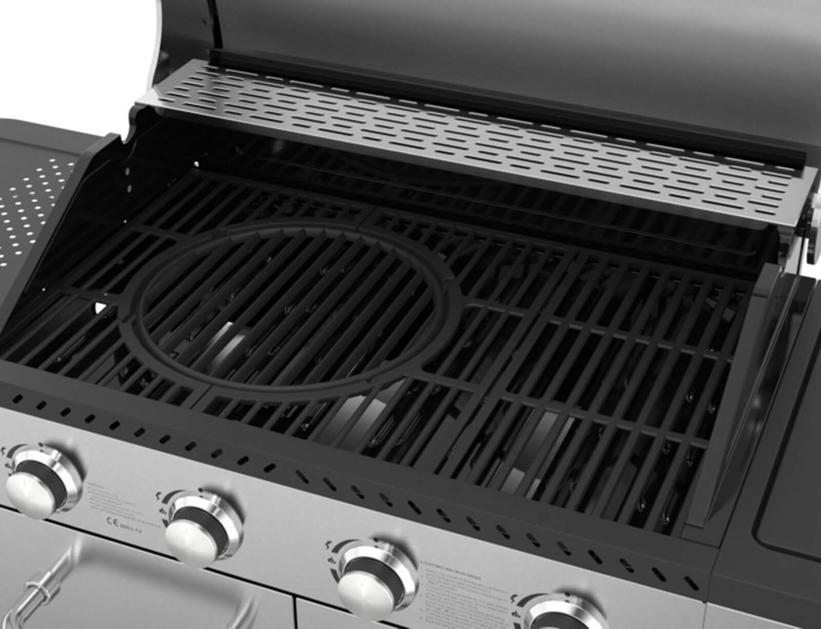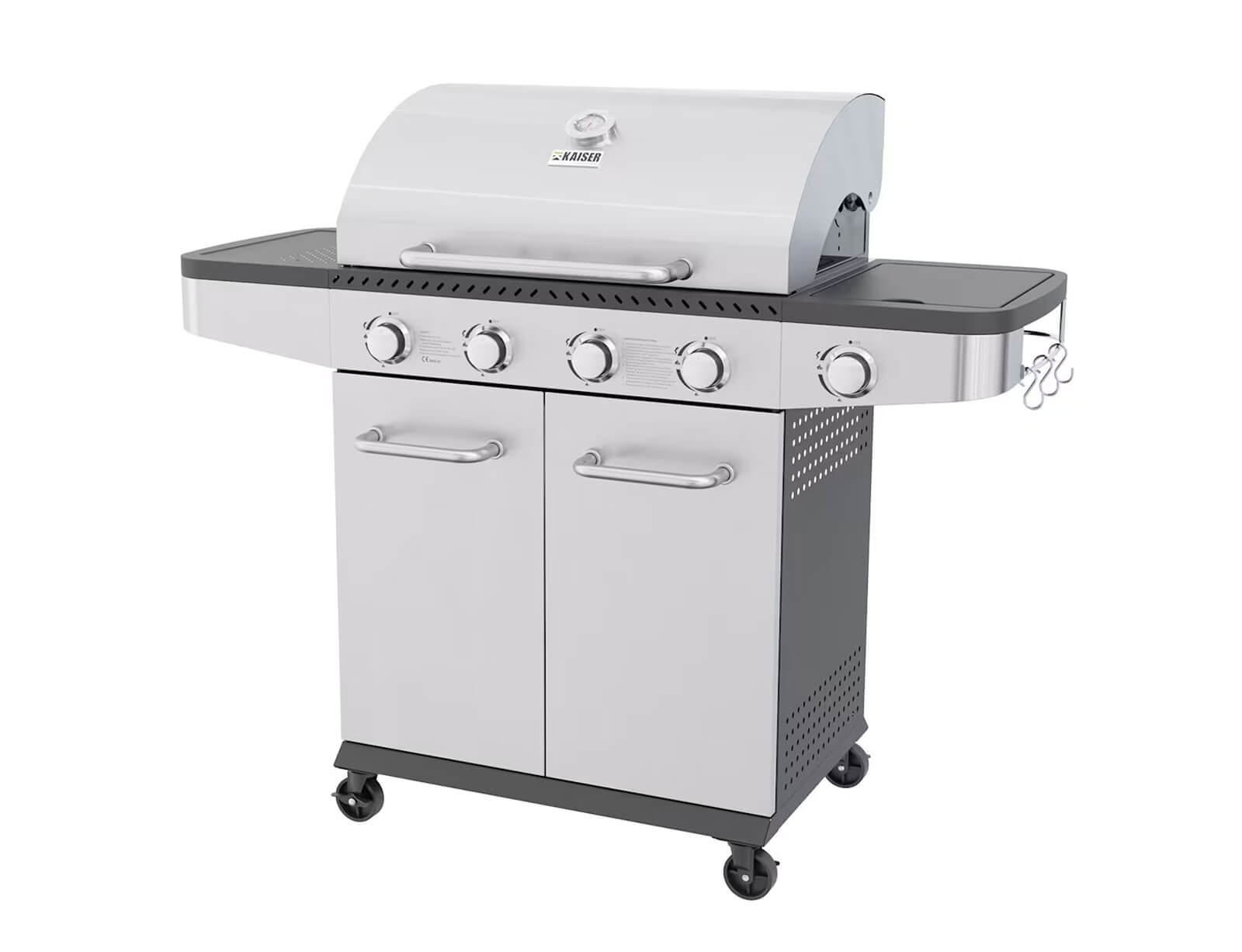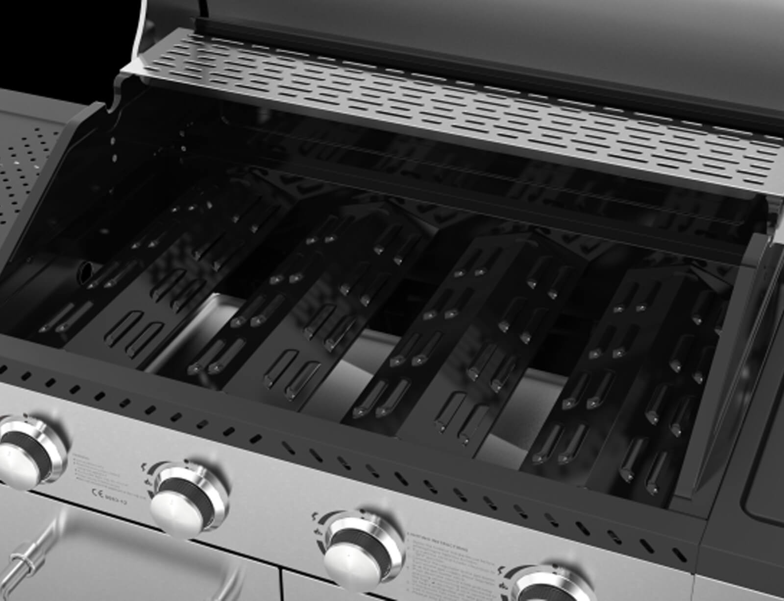 - 2 πλαϊνά ράφια από ανοξείδωτο ατσάλι SS/430 με γάντζους για ανάρτηση εργαλείων ψησίματος