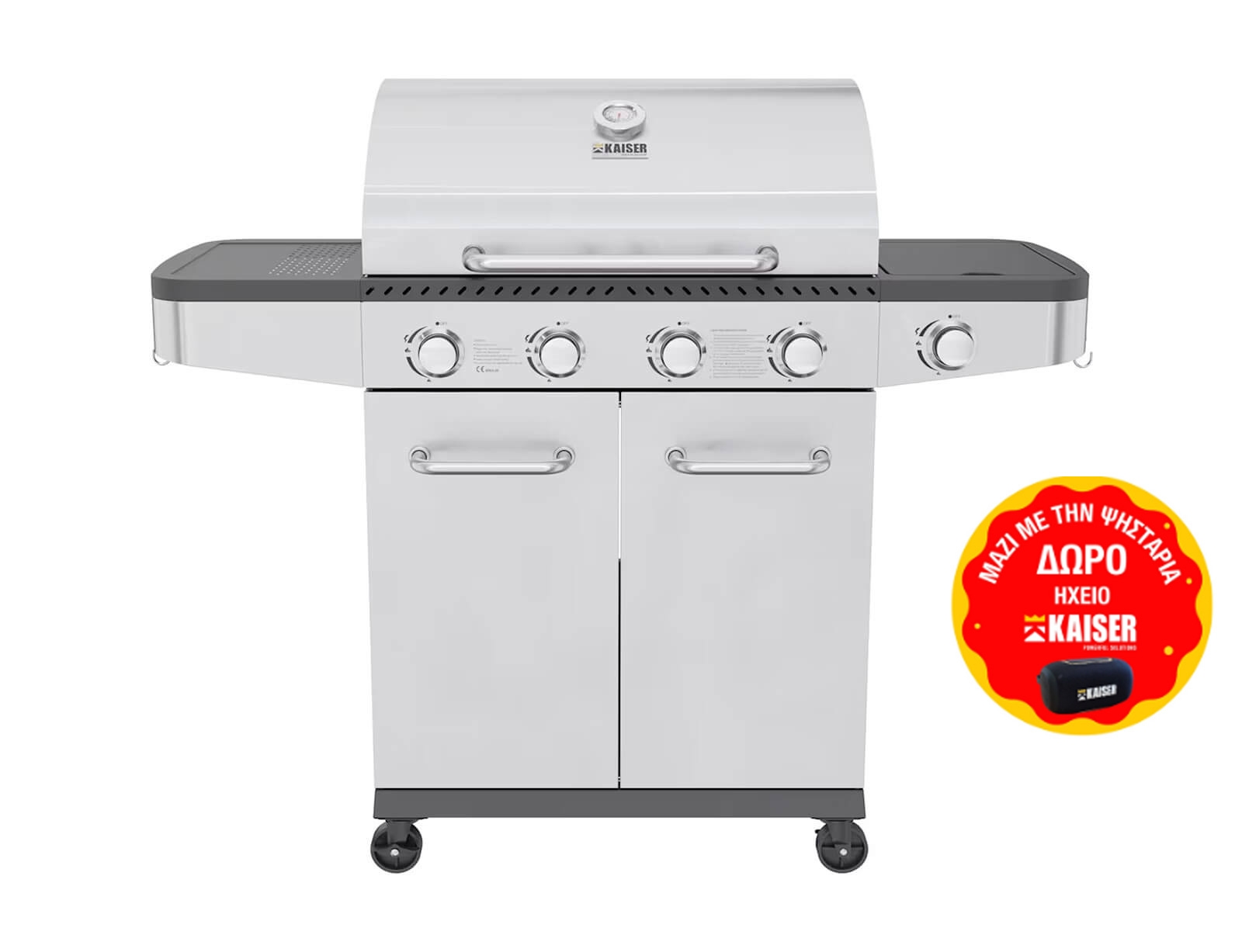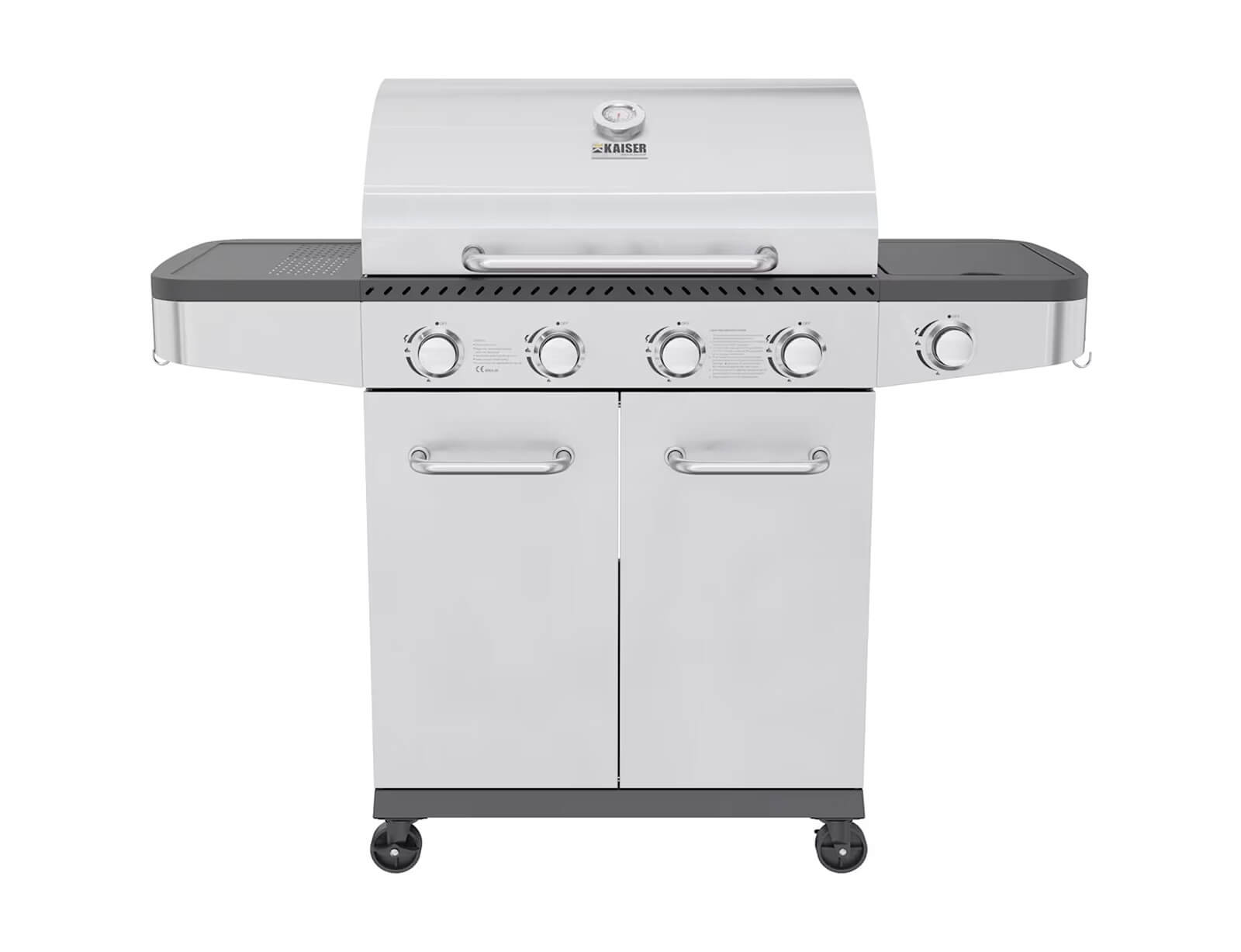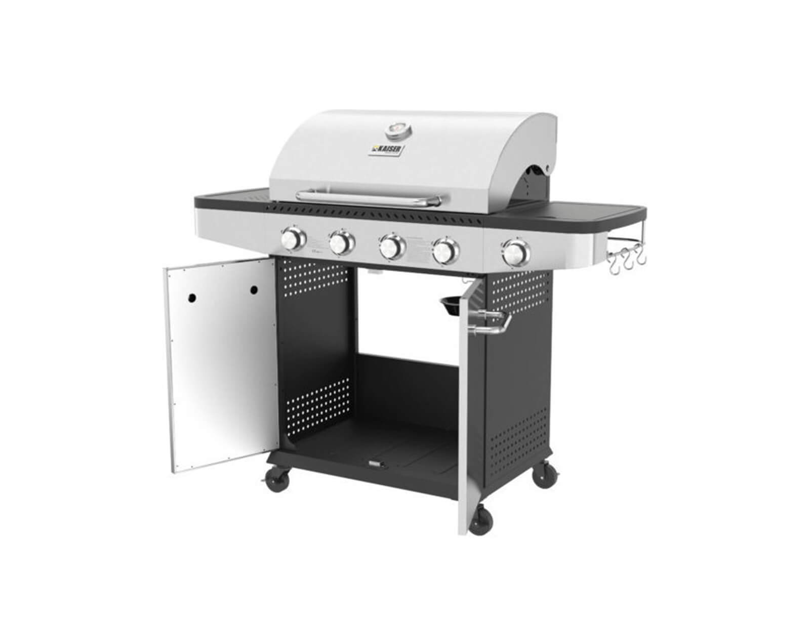 - 2 πλαϊνά ράφια από ανοξείδωτο ατσάλι SS/430 με γάντζους για ανάρτηση εργαλείων ψησίματος