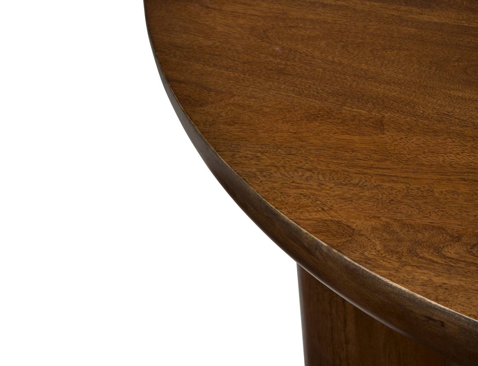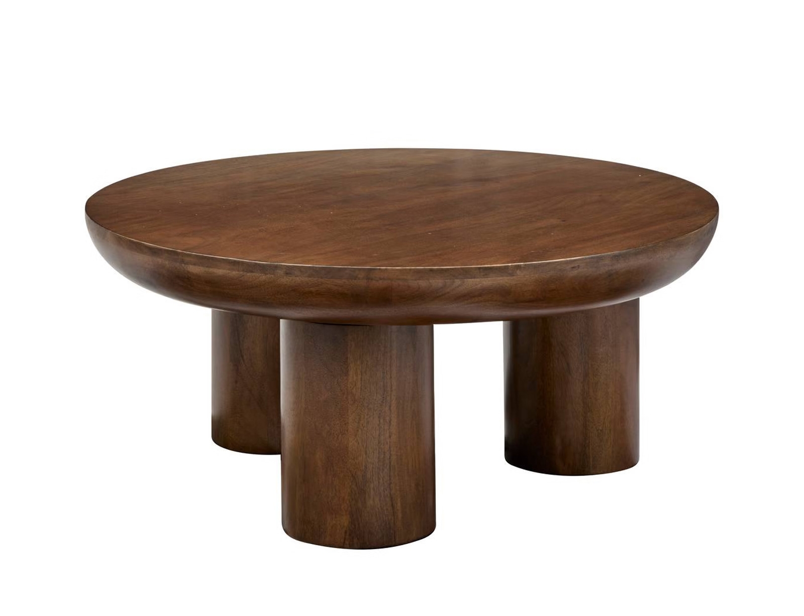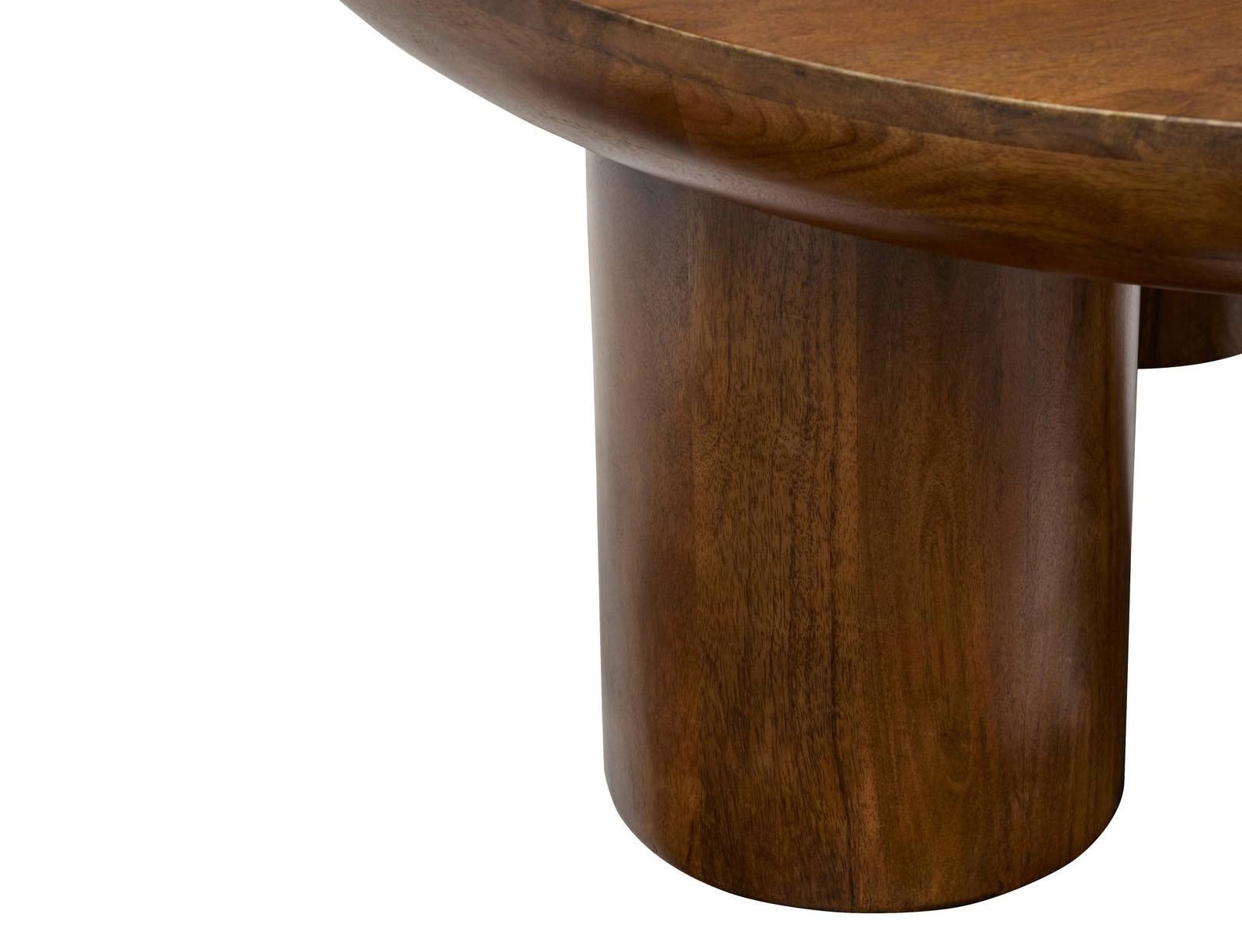 Το τραπεζάκι σαλονιού Stambh Atmosphera θα προσθέσει αμέσως χαρακτήρα στο δωμάτιο όπου βρίσκεται. Σε βαθύ χρώμα, είναι κατασκευασμένο από μασίφ ξύλο μάνγκο. Αυτό το στιβαρό υλικό εξασφαλίζει μεγάλη διάρκεια ζωής. Χαρακτηρίζεται από τρία χοντρά κυλινδρικά πόδια που στηρίζουν την κυκλική επιφάνεια του τραπεζιού. Επιπλέον, ολόκληρο το κομμάτι είναι επικαλυμμένο με προστατευτικό βερνίκι νιτροκυτταρίνης.